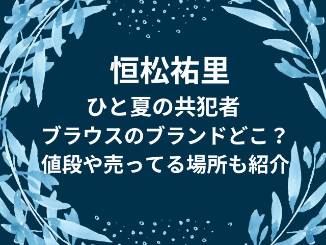 本記事では、恒松祐里ひと夏の共犯者ブラウスのブランドどこ?値段や売ってる場所も紹介と題して詳しくお伝えしたいと思いますので最後までお付き合いください。